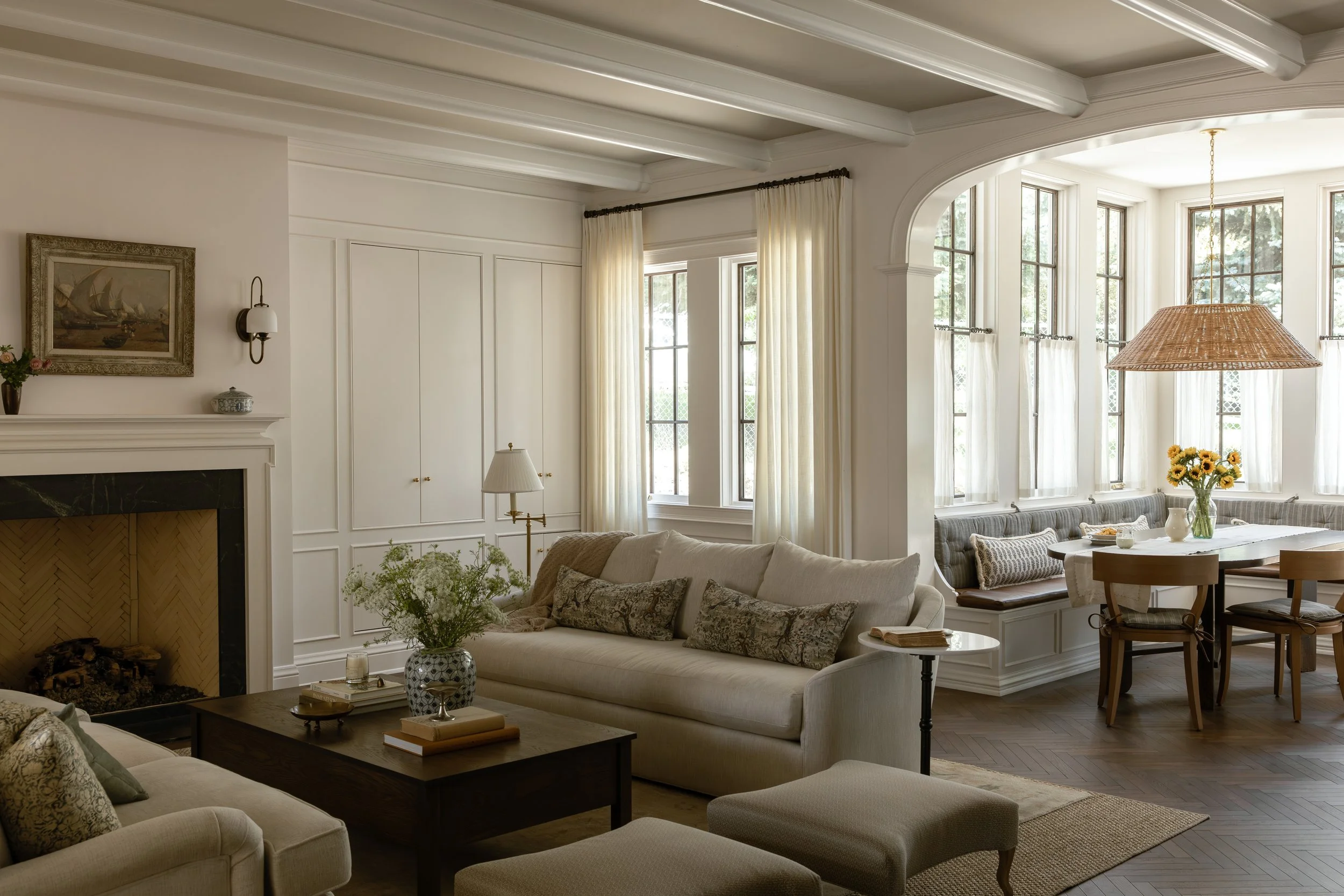 OUR INTENTION: to bring a sense of Southern charm and a sense of place to this newly constructed home. We aimed to create a home that balances elegance with comfort, where stained wood paneling, tiled walls, and patterned wallpaper layer beautifully to evoke warmth and character. Designed for a large family, the layout centers around bedrooms and gathering spaces that support everyday living, resulting in a home that feels both intimate and inviting, despite its grand scale.