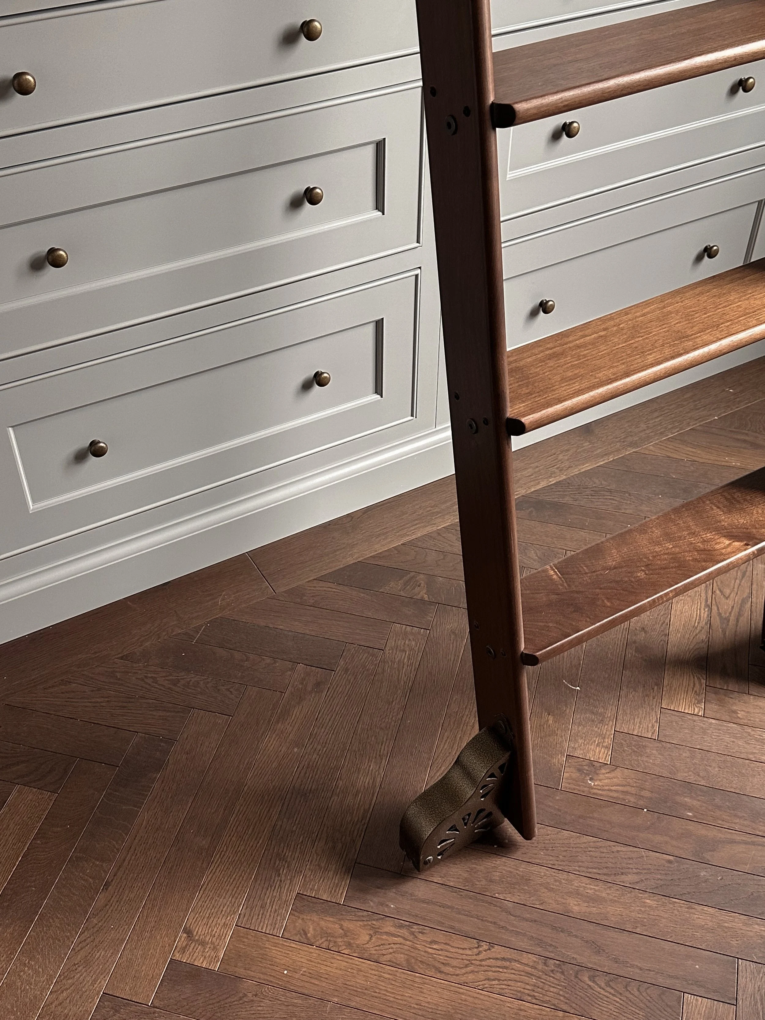 We added fabric panel behind the glass doors for a touch of interest while still concealing any clutter on the shelves.